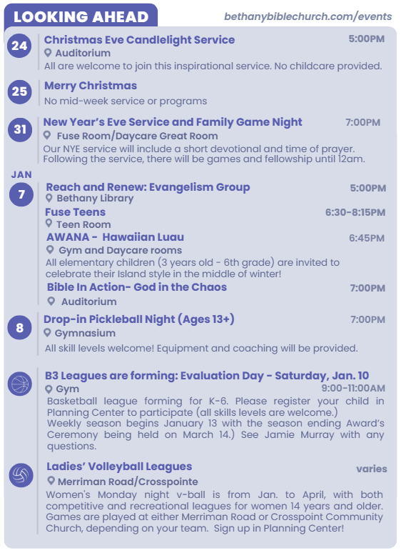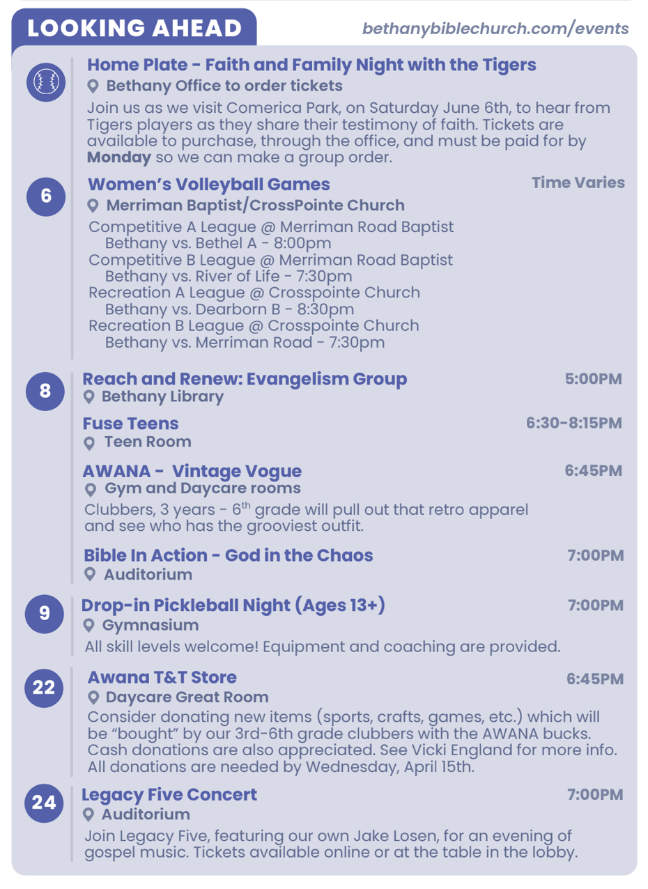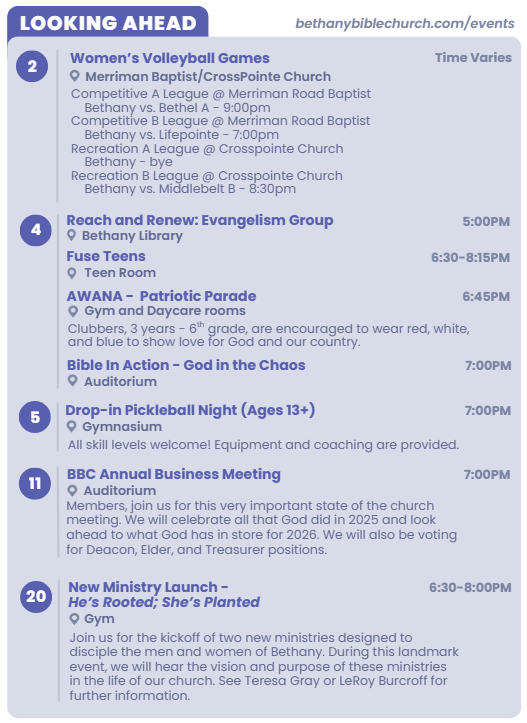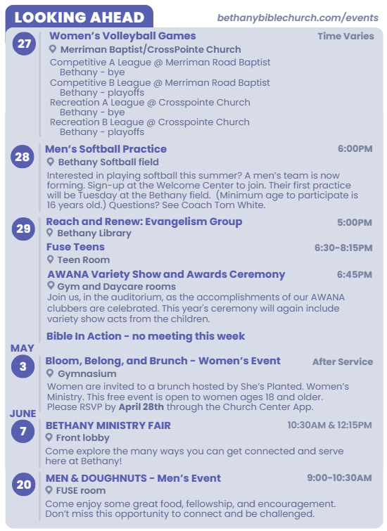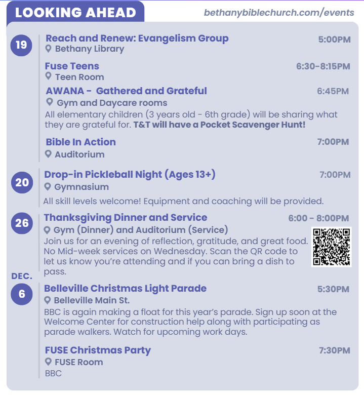 Serving others reflects Jesus Christ’s love for humanity. At Bethany Bible Church, we follow God’s instruction to use our time and resources to put others before ourselves. Fill out a connect card or visit our Serve page to learn more!